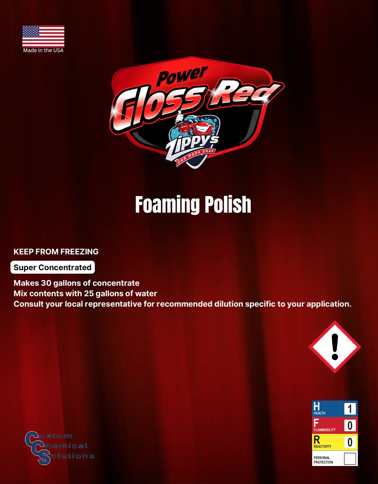 This product brings the four elements needed to spice-up the customers car wash experience – vibrant color, long-lasting thick foam, that familiar bubble-gum scent and branded surfactants. The branded surfactants formulated within the Tri-Gloss provide the lubricity needed to aid in a cleaner vehicle in friction based automatic washes. This product can be used in Soft Touch, Touch Free, Tunnel and Self-Serve applications. This product should be applied using a foam generation applicator (foam stick, shower head or foam curtain).